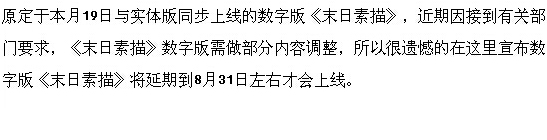 《末日素描》数字版延期公告